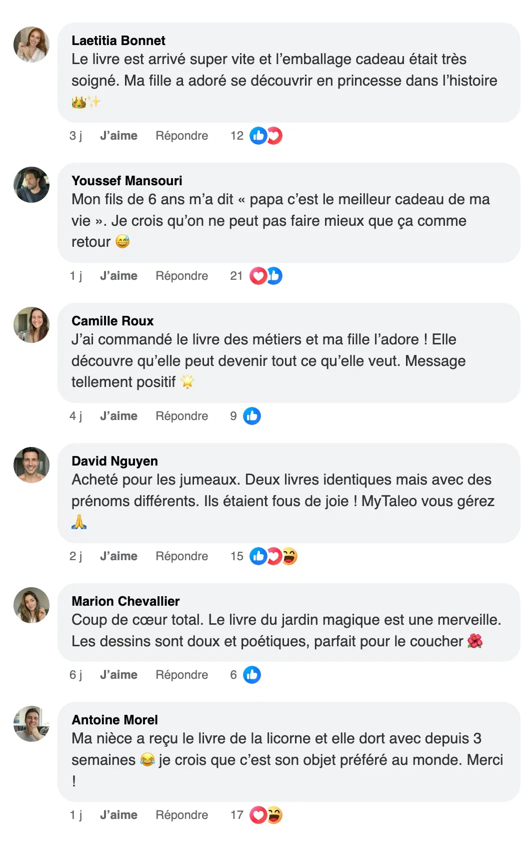 Découvrez ce que les parents disent après avoir offert un livre MyTaleo.