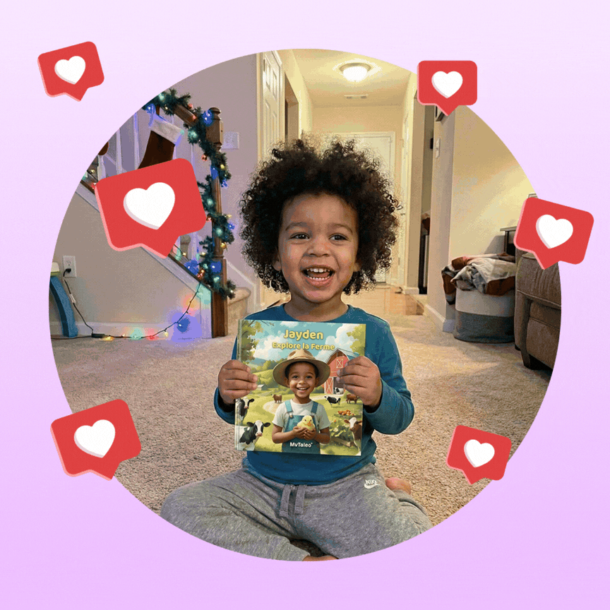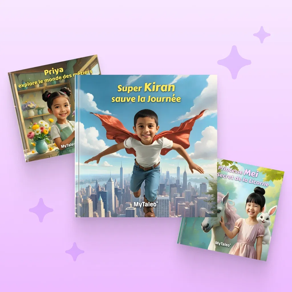 Choisissez une histoire, ajoutez le prénom et la photo de votre enfant, et laissez la magie opérer. En 2 minutes, son livre est prêt. On s'occupe de l'impression et de la livraison.